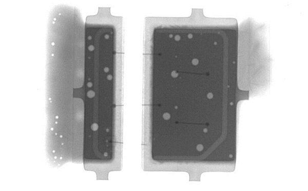 X-RAY检测设备通过穿透样品、检测样品内部缺陷,是当前非破坏检测内部缺陷效率且快速的方法只要。LED灯条板的主要故障集中在绑定金线。利用X-RAY检测设备对LED灯条检测并生成的影像图,可以清楚的看到LED灯条内部金线的位置以及有无开路、短路等异常。