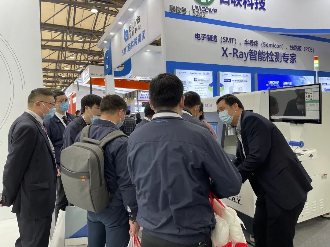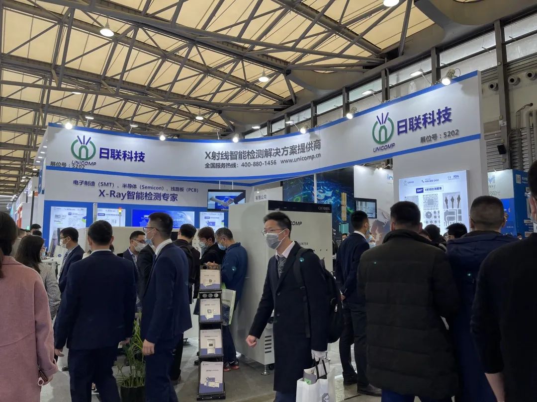2021慕尼黑上海电子生产设备展,于今日在上海新国际博览中心如期而至。作为亚洲电子制造行业的领军盛会,现场观众如潮,人头攒动。日联科技于E5 馆5202展位亮相,现场展示了电子制造领域的高端X-ray检测技术,为客户们带来了创新产品及整体解决方案。
